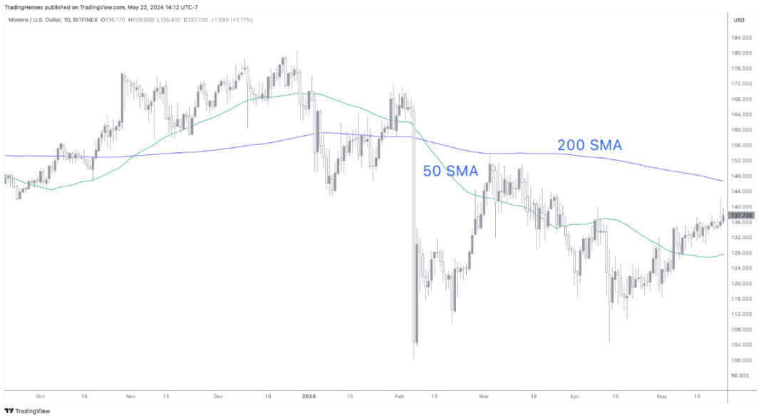 - Purchase when the 50 SMA crosses above the 200 SMA