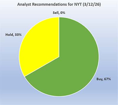 Examine that with the Magnificent Seven, the place roughly 91% of analysts advocate shopping for, and it turns into clear that NYT is much from overcrowded with bullish sentiment.