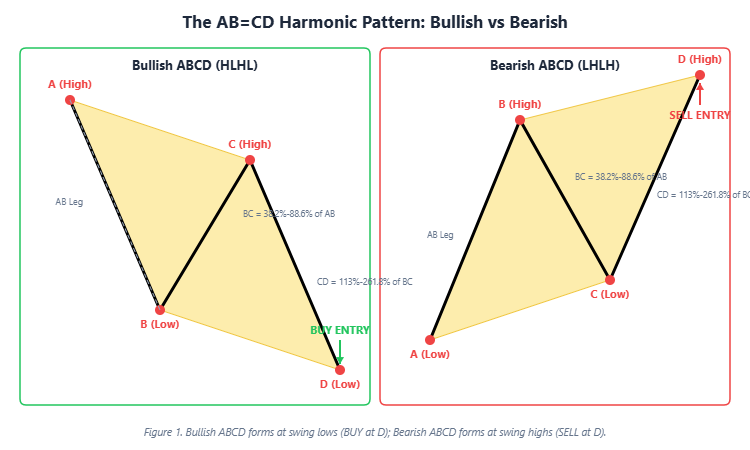 Determine 1. Bullish ABCD types at swing lows (BUY at D); Bearish ABCD types at swing highs (SELL at D).