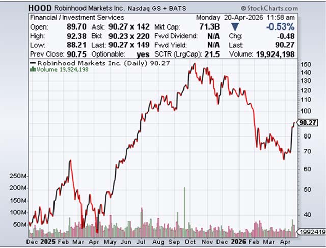 Yet one more catalyst value noting: HOOD experiences Q1 2026 earnings on April 28 – simply eight days from now. Wall Road consensus sits at $103.77.