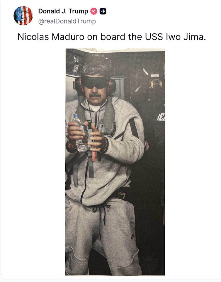 A picture circulated over media the weekend of Jan. 3 and 4 was meant to convey dominance: Venezuela’s president, Nicolás Maduro, blindfolded and handcuffed aboard a U.S. naval vessel. Shortly after the operation that seized Maduro and his spouse, Cilia Flores, President Donald Trump introduced that the US would now “run” Venezuela till a “secure, correct and considered transition” could possibly be organized.