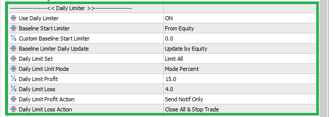 | Day by day Restrict Loss | Restrict worth for loss limitation |