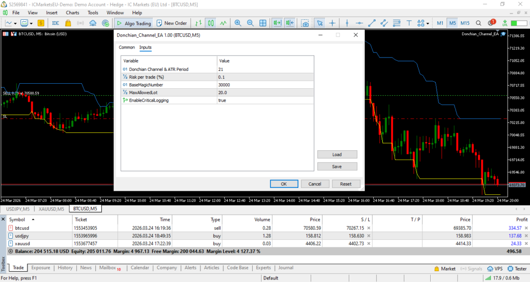 Donchian Channels EA for MT5 https://www.mql5.com/en/market/product/170388 – Trustworthy Implementation of Tom Basso’s Pattern Following Breakout System