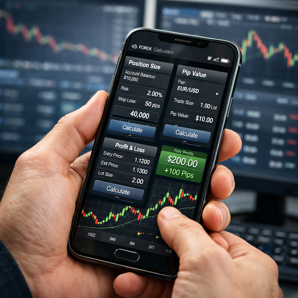 Every software permits you to enter danger % and cease‑loss distance, then it returns the precise lot measurement and potential achieve or loss.