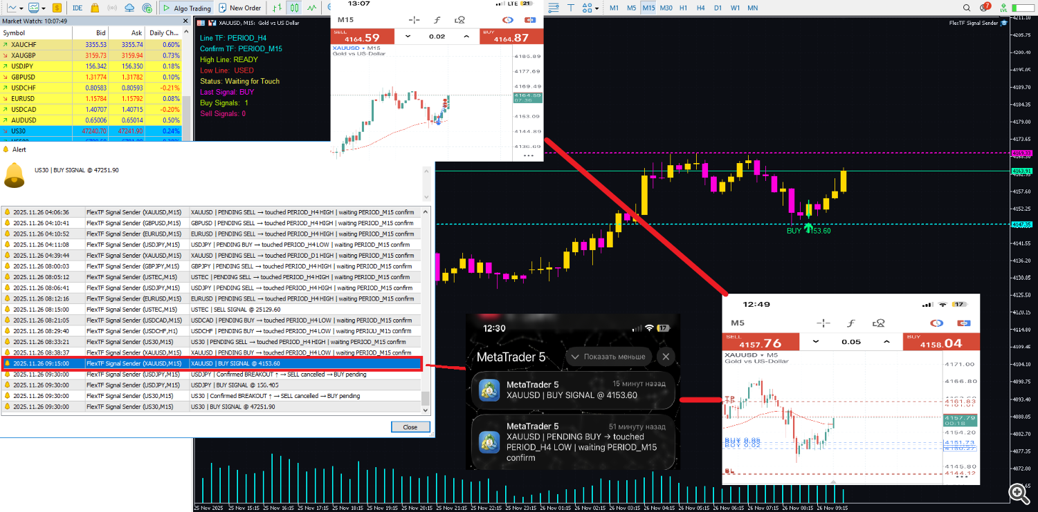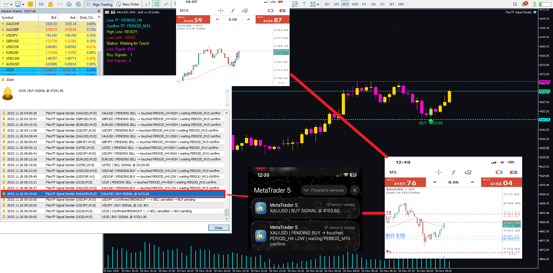 FlexTF Sign Sender is a strong multi-timeframe Excessive/Low contact affirmation indicator designed to assist merchants learn market construction with readability.