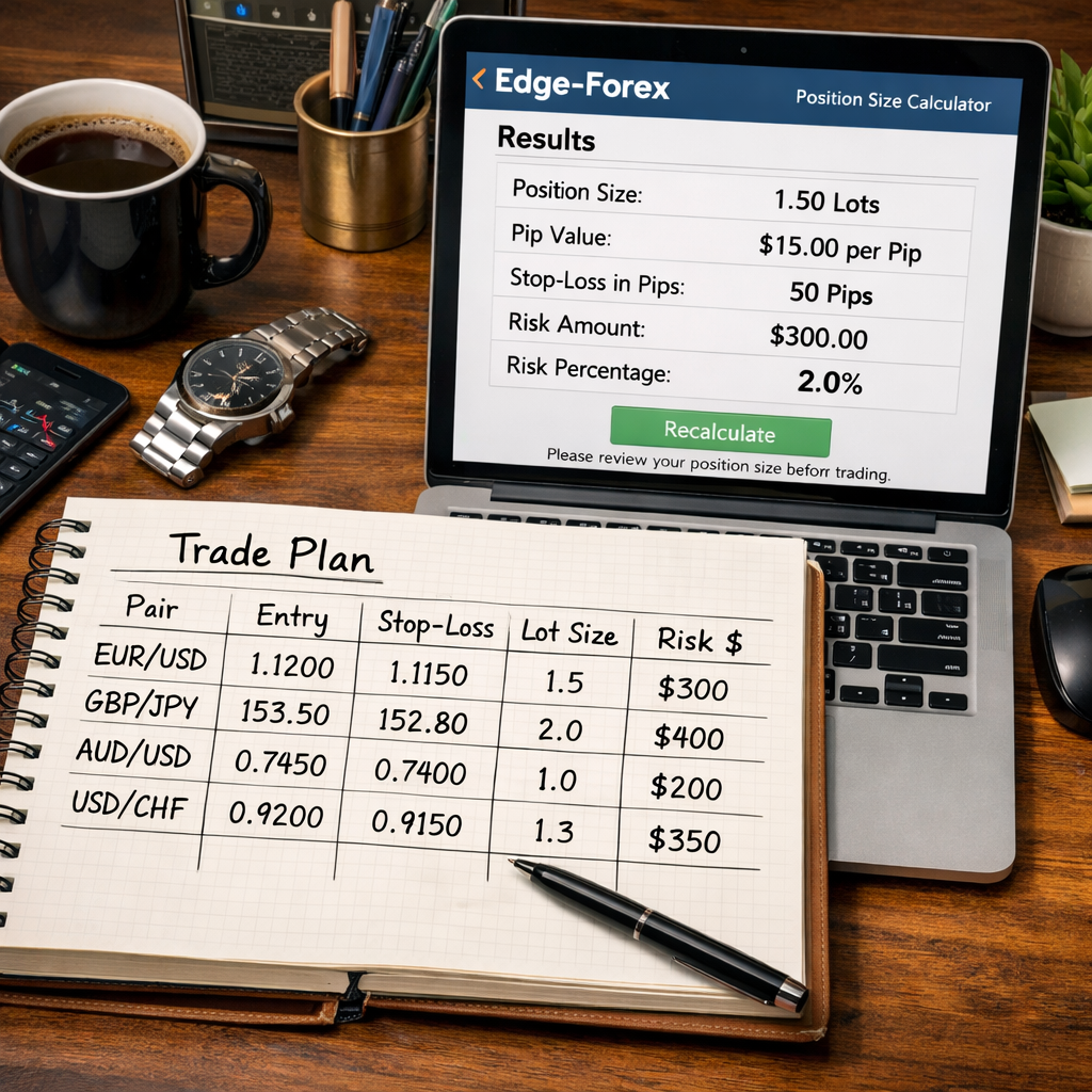 Open your chosen foreign exchange place sizing calculator. For this information we’ll use Edge‑Foreign exchange as a result of it auto‑calculates lot measurement from danger %.