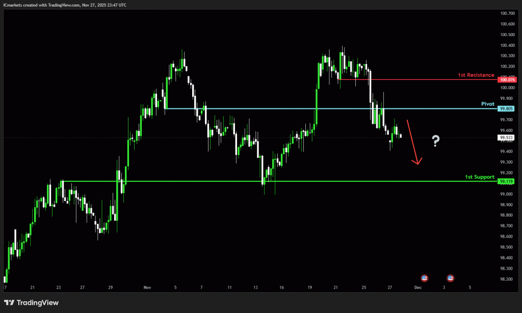 The value may see a short-term pullback towards the pivot earlier than persevering with its bearish transfer down towards the first assist.