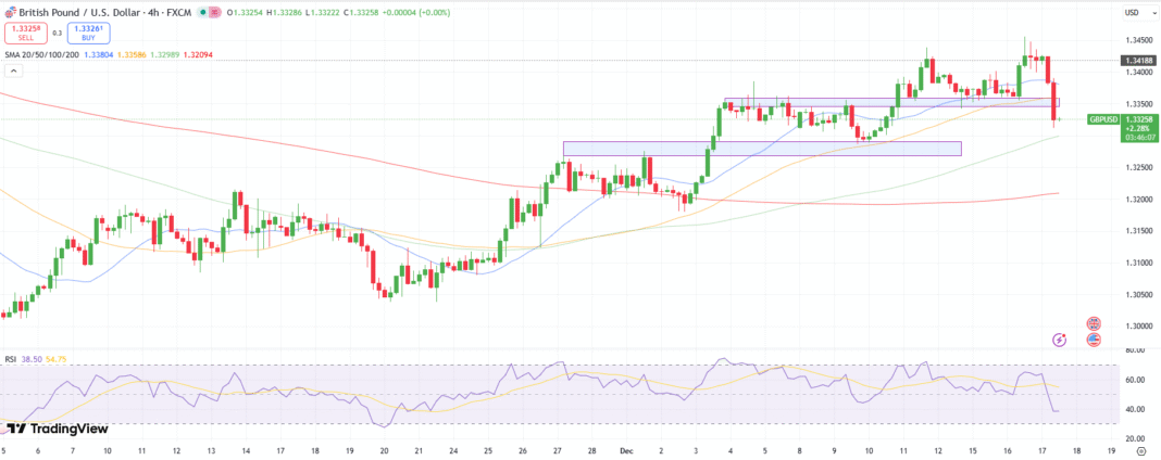 The British pound plummeted towards the US Greenback on Wednesday following the weaker-than-anticipated UK inflation figures in November. The GBP/USD pair fell by over 0.5% in the direction of the 1.3310 area, defying Tuesday’s good points when the pair briefly went above 1.3450.