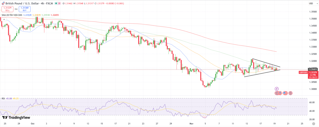 The preliminary response of GBP/USD was muted, edging decrease to 1.3130, extending its decline for a fourth consecutive session. The moderation in inflation information, mixed with weaker labor information and GDP development, is a results of rising fiscal uncertainty. This fuels the expectations of a December charge minimize by the Financial institution of England. With the UK Autumn Finances due subsequent week, merchants are cautious about additional stress on gilt yields and the pound, as it’s reportedly that the federal government might abandon its plan to hike revenue tax. This might widen the fiscal hole to £30 bn. Markets stay unconvinced that Rachel Reeves can preserve a reputable fiscal self-discipline with out deeper cuts.