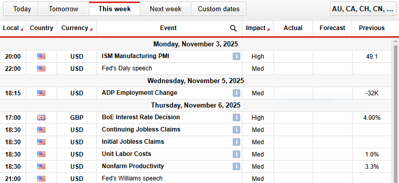 Subsequent week, merchants anticipate the Fed’s Daly speech, the ISM manufacturing PMI, and ADP Employment. Nonetheless, the nonfarm payrolls knowledge stays the first catalyst for the markets, because the markets missed the earlier knowledge amid the shutdown.