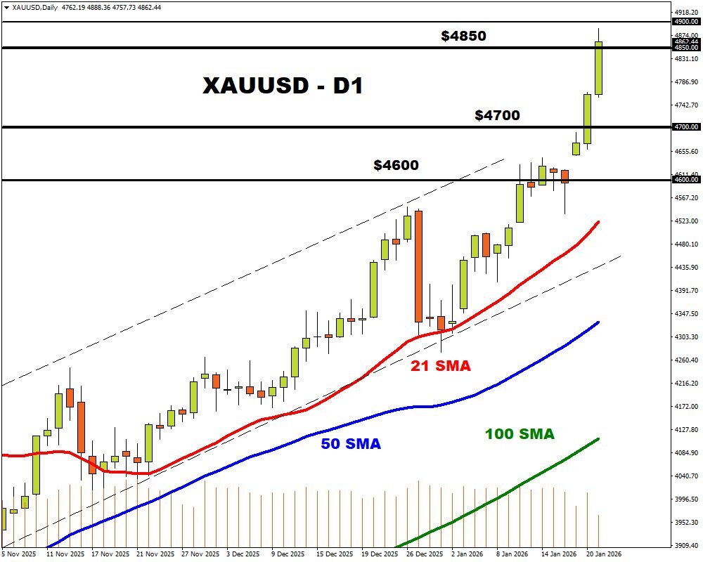• Gold hits contemporary report above $4885