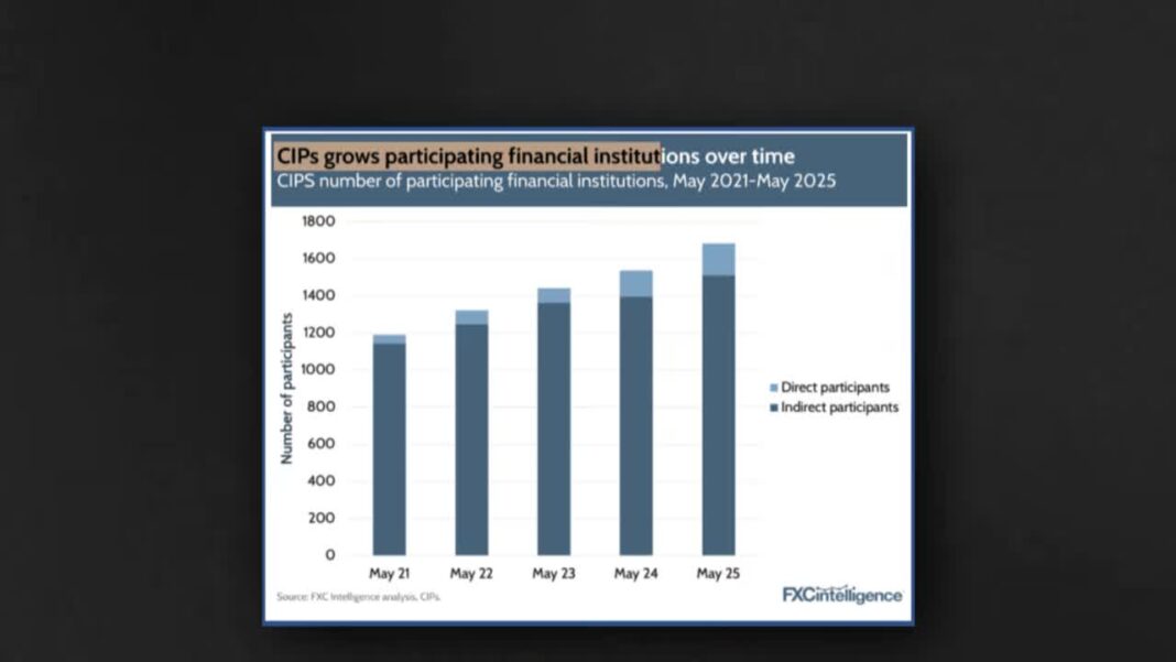 CIPS collaborating monetary establishments have grown steadily from ~1,180 in Could 2021 to ~1,700 in Could 2025 (Supply: FXC Intelligence evaluation, CIPS)