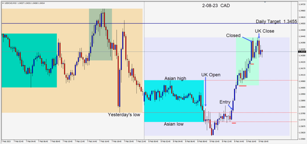 A really bullish candle above its Asian session low arrange a protracted commerce within the USDCAD risking 10 pips for a possible 75 pips to our day by day goal at 1.3455.