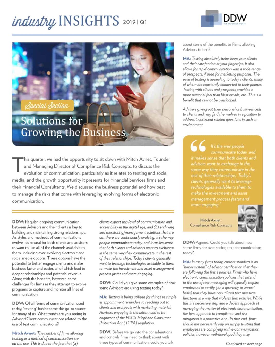 DDW: Of all types of communication used right this moment, “texting” has turn out to be the go-to supply for many people. What tendencies are you seeing in Advisor/Shopper communications associated to the usage of textual content communications?