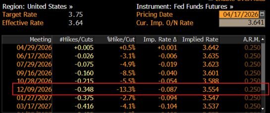 Be aware: Merchants are at present pricing a 35% probability that the Fed cuts charges in 2026.