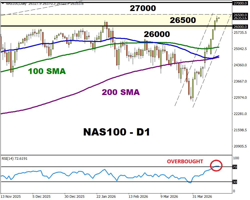 Not too long ago, US equities have been buoyed by hopes that the US and Iran will safe a everlasting ceasefire. This has propelled each the NAS100 and US500 to recent all-time highs!
