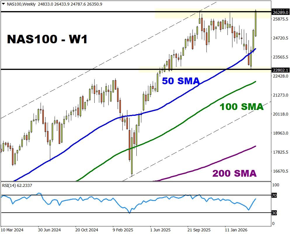The highlight shines on FXTM’s NAS100 which has rebounded 16% from its 2026 low.