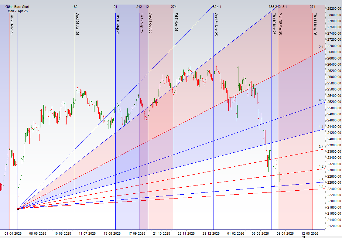 The theme for the broader indices is “The Time-Cycle Crossroads.” The market is marching immediately into a significant temporal wall on Tuesday. The Bayer Rule 27 activation on Monday indicators that the prevailing development is exhausted and prepared for a significant structural flip. The Nifty Gann Date on Tuesday is the exact execution level. IF the Nifty defends important help throughout this convergence, THEN a robust reversal swing is initiated. Nevertheless, the tip of the week is fraught with hazard. Mars coming into Aries (its residence signal) on Thursday injects uncooked, aggressive vitality. IF Tuesday’s pivot resolved to the draw back, this Martian vitality will speed up the liquidation cascade. IF Tuesday held as a backside, Mars will gas a vicious short-covering squeeze. The end result relies upon solely on how the indices negotiate the Tuesday Gann Date.