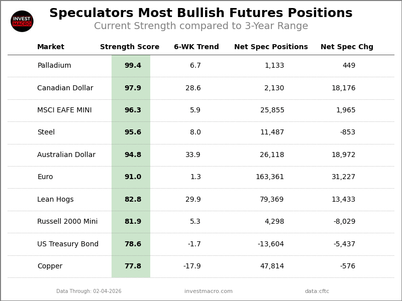 The Metal speculator place is available in third this week within the excessive standings. The Metal speculator stage resides at a 96 % rating of its 3-year vary.