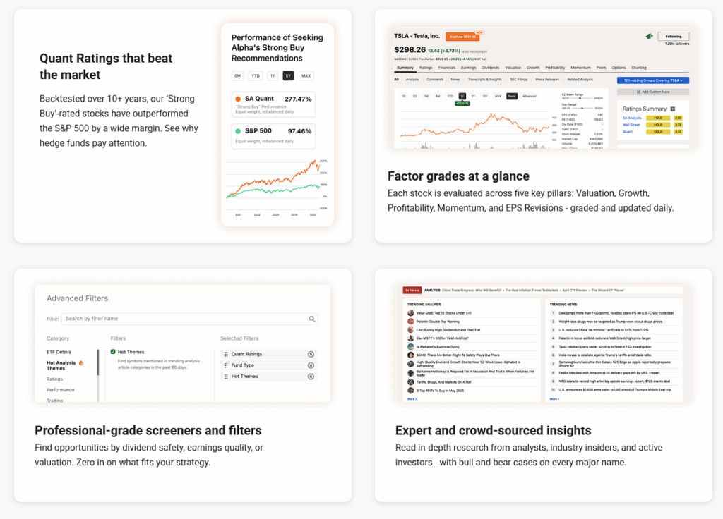The underside line on efficiency: Searching for Alpha provides actual worth. Whether or not you utilize it to supply contemporary inventory concepts, to observe your portfolio’s well being, or just to get affirmation by yourself evaluation, the platform’s data-driven instruments have a demonstrated monitor report. Shares with Sturdy Purchase quant scores have massively outperformed, and even Searching for Alpha’s personal mannequin portfolio of picks is crushing the market[24]. In my case, utilizing Searching for Alpha has undoubtedly made me a extra knowledgeable (and worthwhile) investor – it’s helped me spot winners I may need missed and keep away from pitfalls I may need in any other case stepped into.