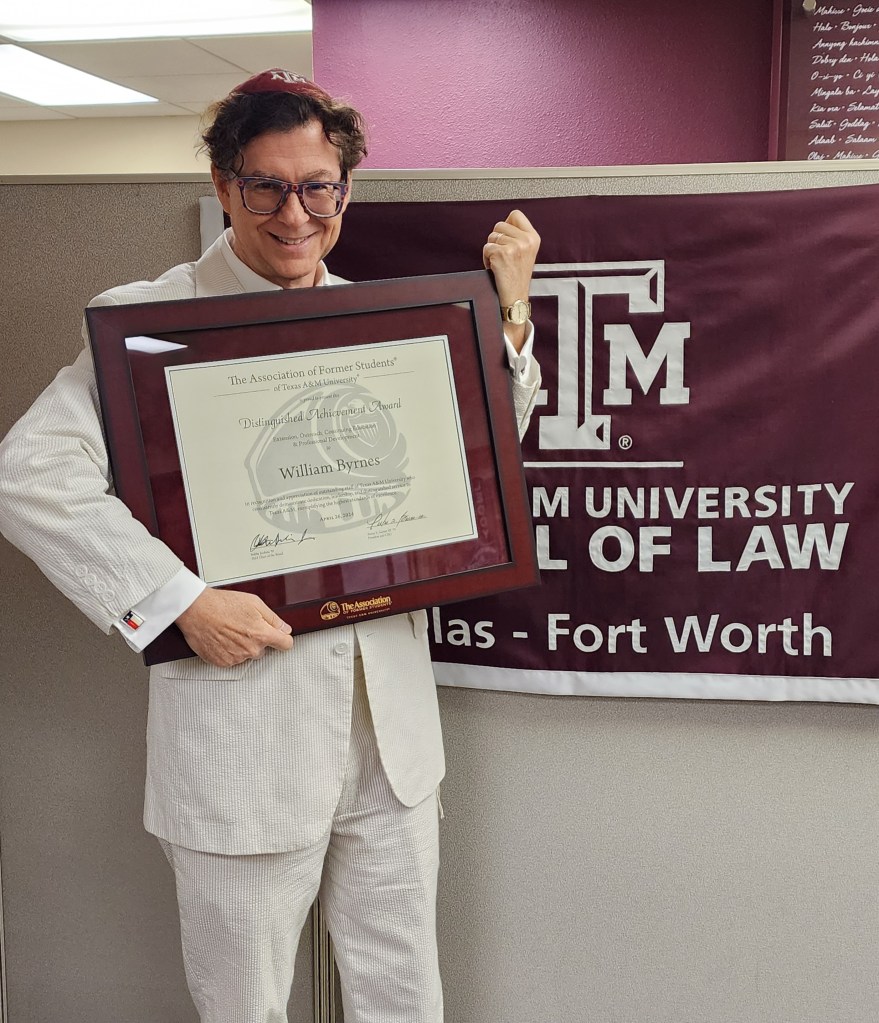 Professor William Byrnes of Texas A&M College Faculty of Legislation obtained the Affiliation of Former College students Distinguished Achievement Award for Skilled Growth, which features a financial present and an engraved gold Texas A&M watch. Texas A&M President Mark Welch said in his letter to Professor Byrnes: