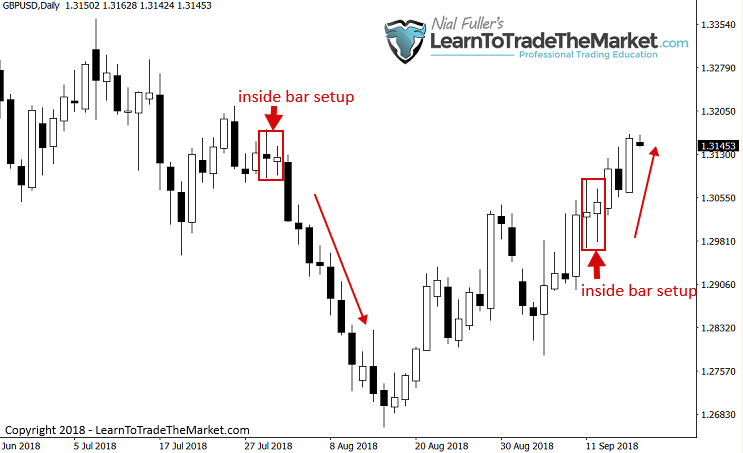Under, we see a day by day GBPUSD chart. Discover the highly effective down and up strikes and the inside bar indicators which have labored out effectively thus far. That is simply the present day by day chart view of the previous couple of months and we will see it’s shifting properly and never very uneven in any respect.