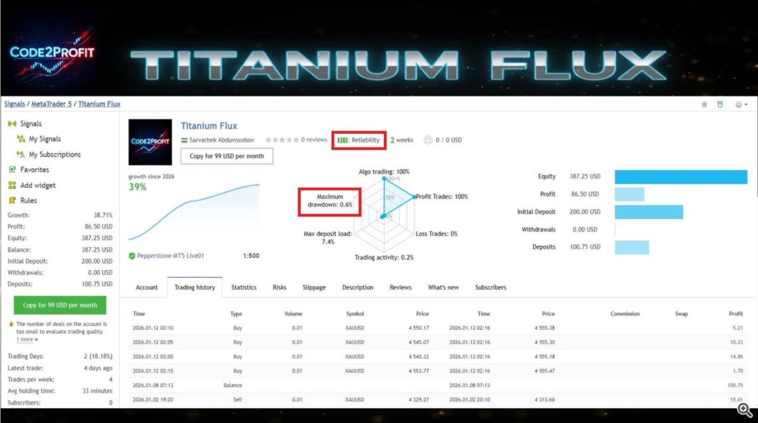 Titanium Flux EA — Good Automation. Actual Self-discipline. – Statistics – 16 January 2026