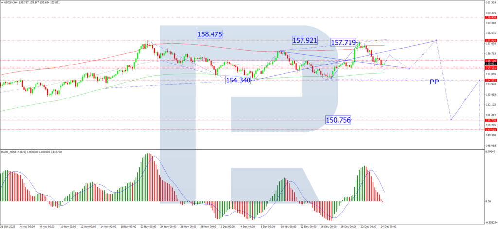 On the H1 chart, the pair is buying and selling inside a consolidation vary round 156.06. A draw back break would goal a decline in the direction of 155.12, whereas an upside decision might provoke a transfer in the direction of 157.92.