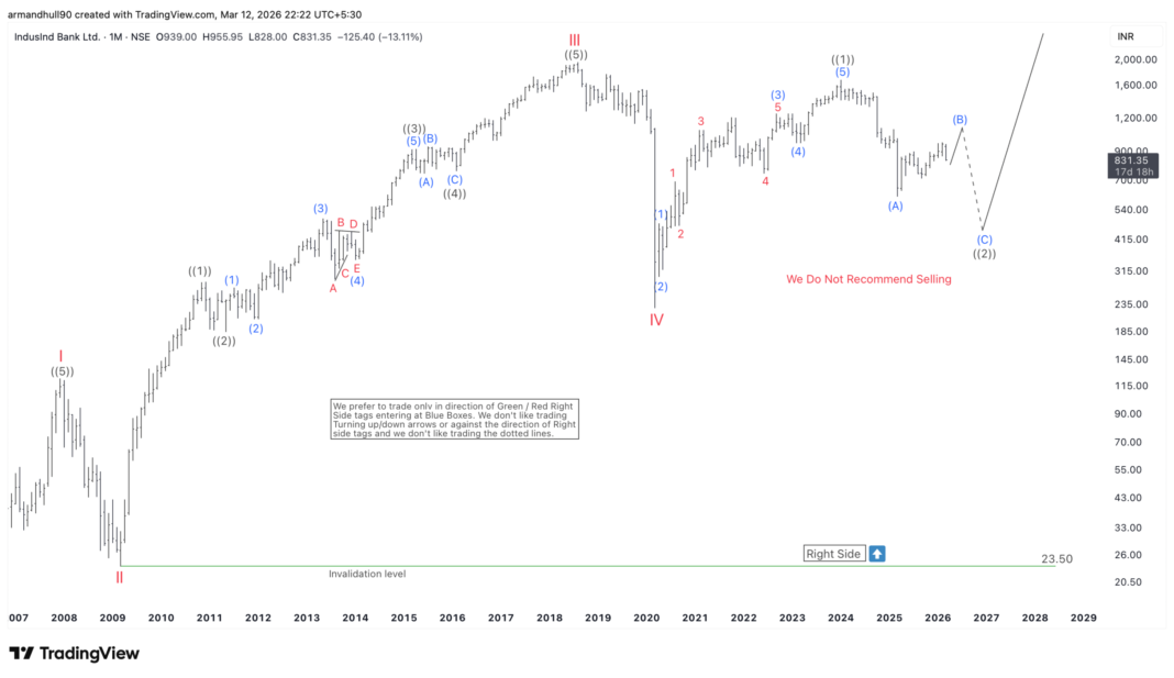 Total, the long-term Elliott Wave outlook for IndusInd Financial institution stays strongly bullish, and the present pullback is seen as a possible alternative earlier than the following main upside section begins.
