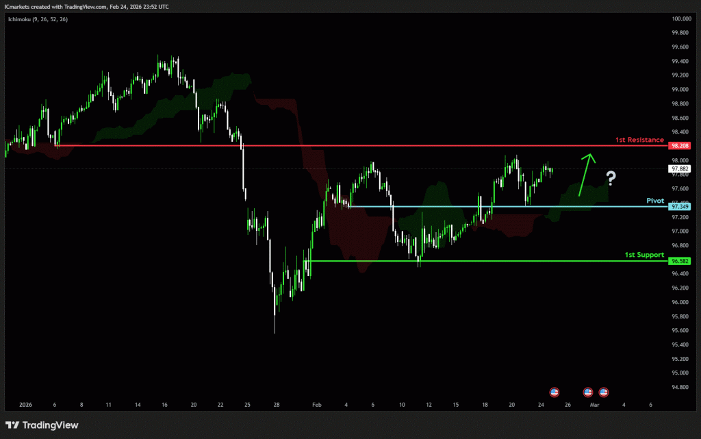 The worth might see a short-term pullback towards the pivot earlier than rising once more towards the first resistance.