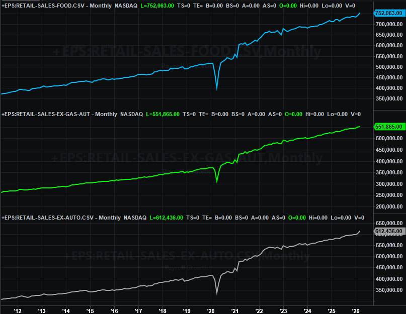 Not a complete lot of reviews to have a look at from final week, however we did get one huge one. That’s final month’s retail gross sales. They had been up, and by a surprisingly wholesome quantity. Whereas inflation is the crux of this improve, notice that customers had been nonetheless prepared to step up with open wallets and open pocketbooks.