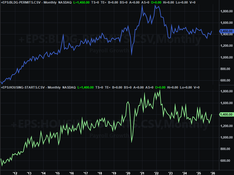 Take Tuesday’s take a look at a few months’ value of housing begins and constructing permits, as an example. Though tepidly, we’re beginning to see discernible bettering traits for each… principally. We’d wish to see a number of extra months of ahead progress right here, however no less than there’s a bit of hope by means of December’s information.