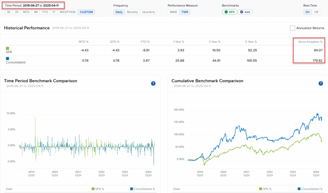As you may see, from 2019 to 2025, my buying and selling account was up 179% (in comparison with 84% for the S&P 500).